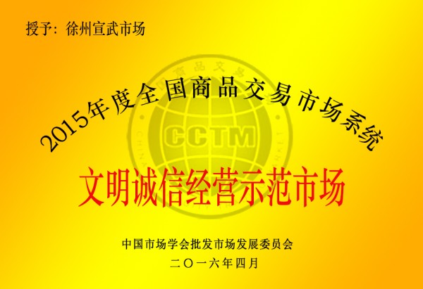 公司獲文明誠信經營示范市場稱號