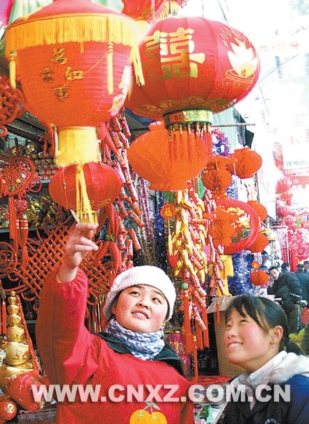 新年即將來臨,象征著喜慶吉祥的節日飾品在我市各大市場和商場開始熱銷。圖為市民在宣武市場選購節日飾品。
